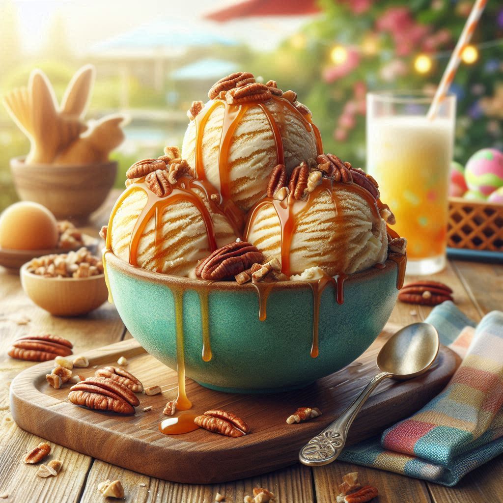 | A yummy blend of Southern pecans and crunchy pralines topped with sweet, buttery caramel sauce. |
