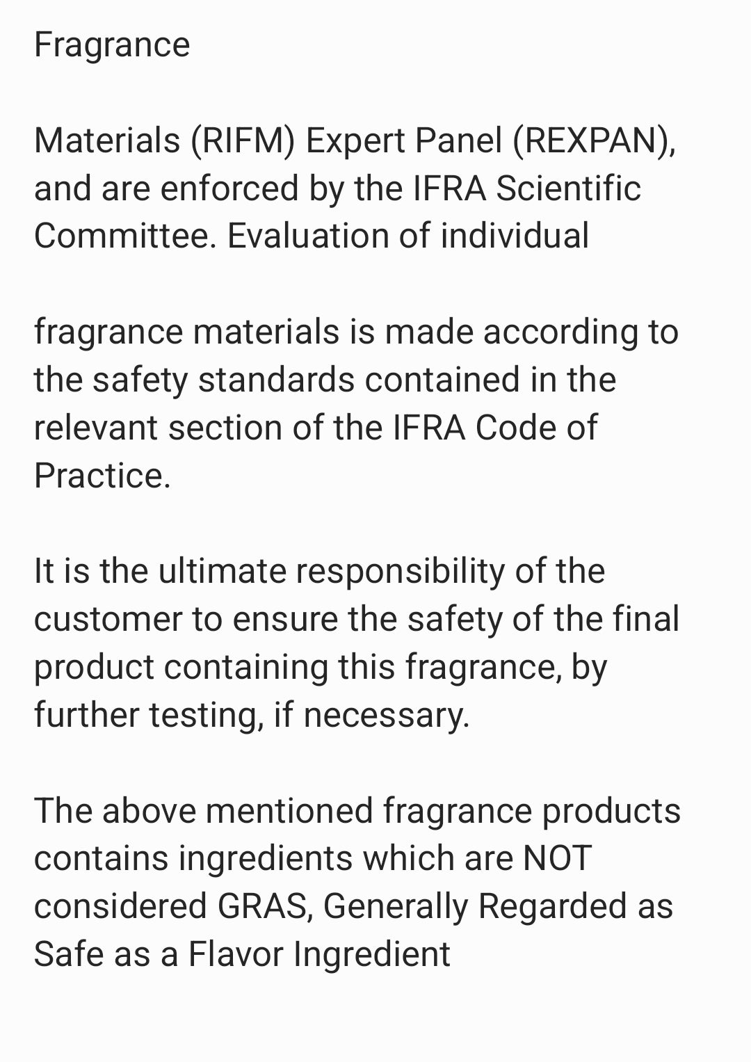 *It is the responsibility of the customer to ensure the safety of the finished product containing this fragrance by conducting all necessary tests.
