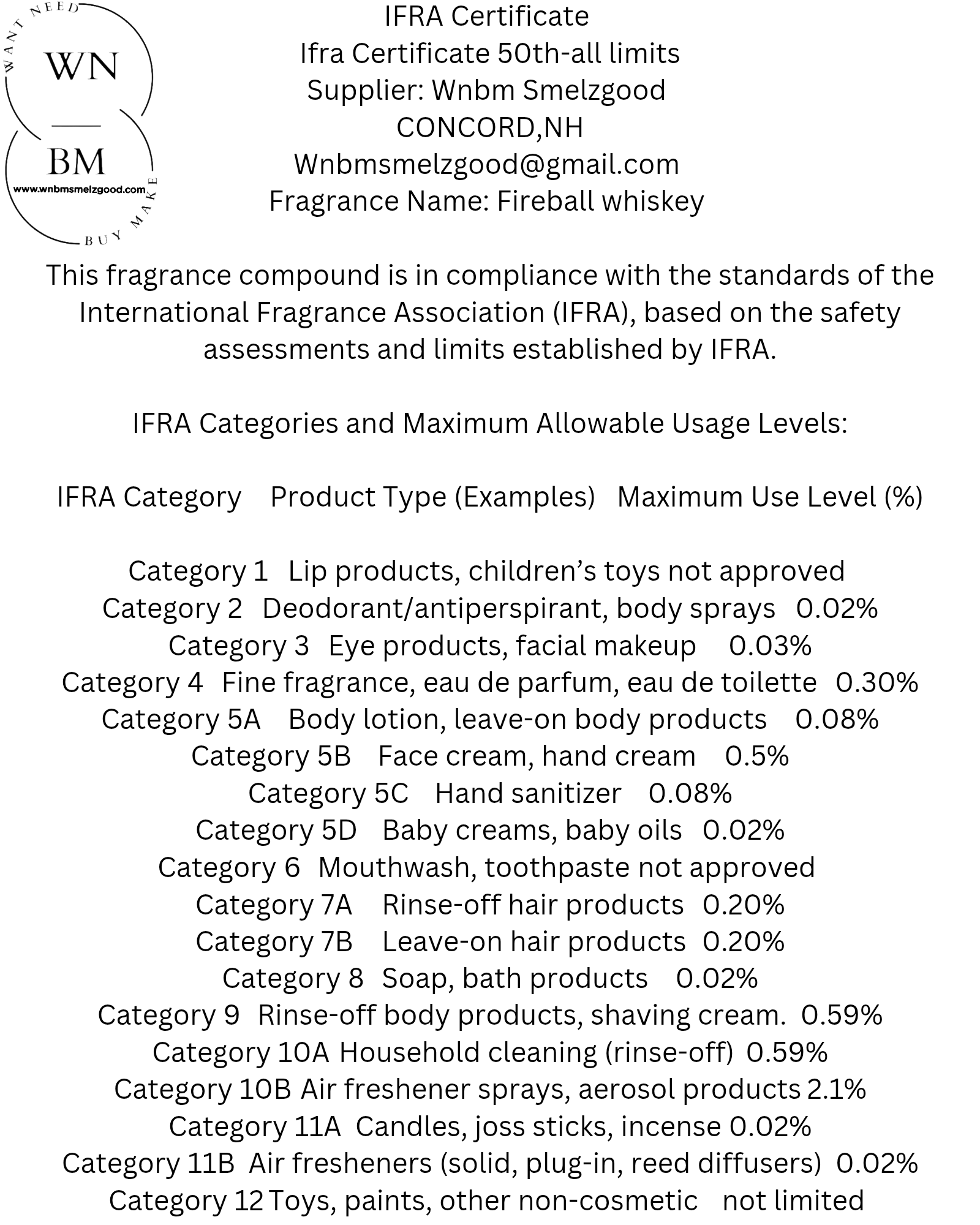 *It is the responsibility of the customer to ensure the safety of the finished product containing this fragrance by conducting all necessary tests.
