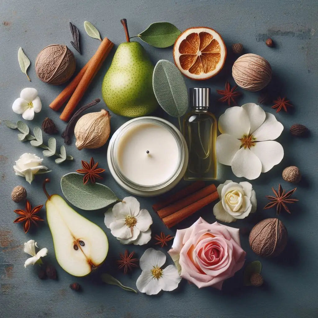 Pear, Sage Leaves, Sweet orris, Rose Petals, White Jasmine ,Vanilla, Cedarwood and Musk