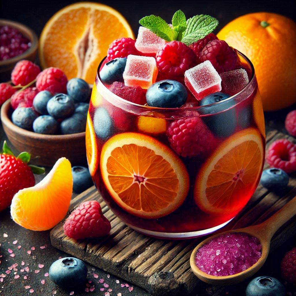 combination of mandarin, raspberry , fresh blueberry and sugar crystals