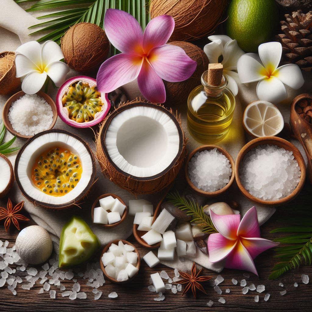 coconut, dragonfruit and saltwater breeze, passion flower, frangipani , jasmine, sandalwood, musk and hints of sun bleached woods.